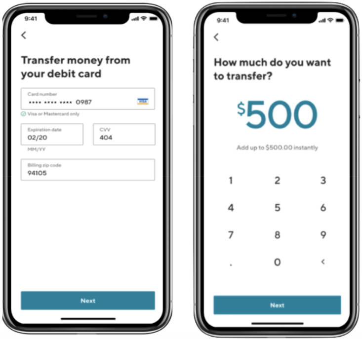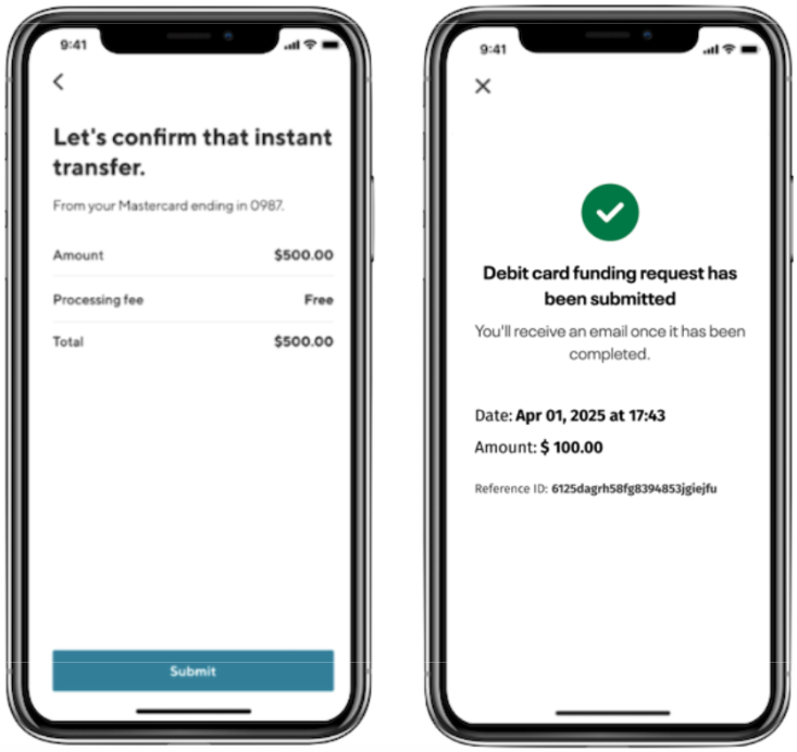 When your debit cardholders move funds using an external debit card, their experience can be as simple as this: